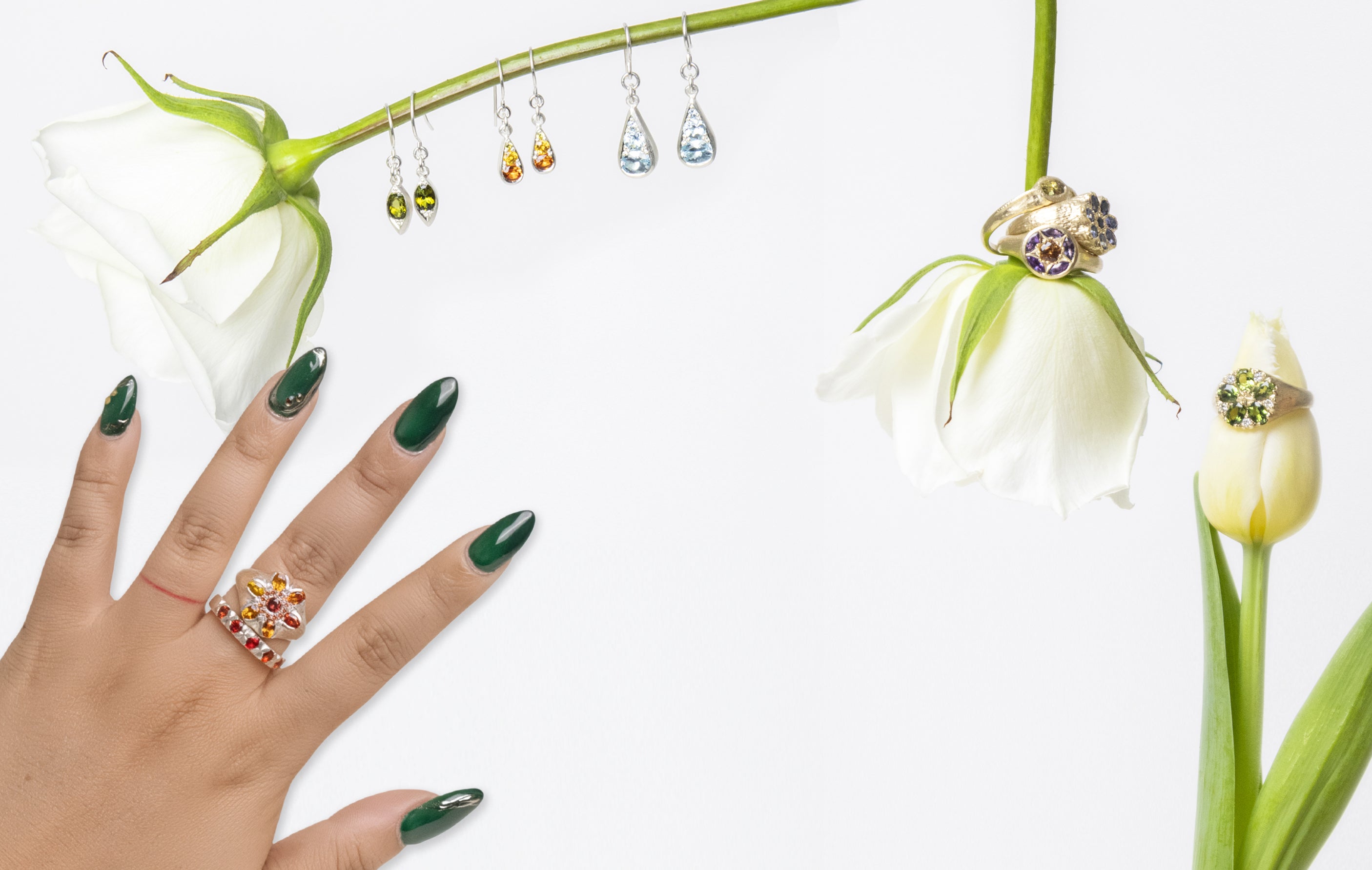 With over 20 years of expertise, she hand-sets every vibrant gemstone to capture the fleeting sparkle of a season in bloom.